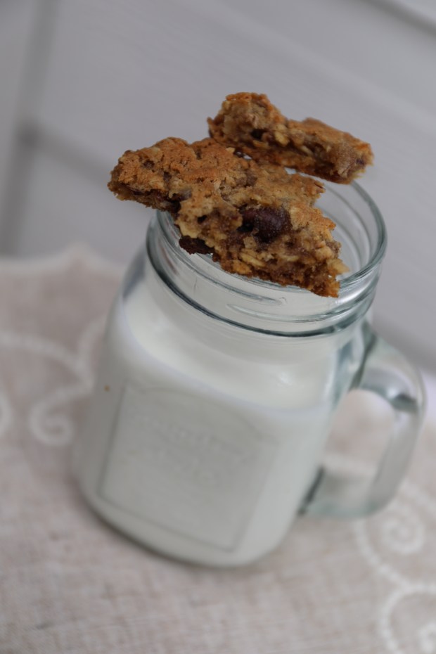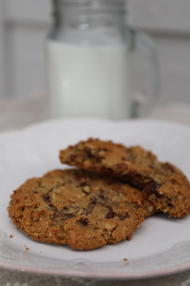 Everyone loves cookies. They are simple but decadent, and there is a cookie to fit any occasion and palate. The traditional chocolate chip cookie is always a crowd favorite, but this recipe takes it to the next level, with all things good like oats, pecans, coconut, and of course chocolate chips. I wanted to make some really good cookies to share with some people at work and needless to say there were none left on the pan when I left that meeting. I was impressed at how the cookies retained their chewiness on the inside even the next day, which often some cookies become hard and don’t keep well. Former First Lady, Laura Bush, created this cookie for a political bake-off in 2000. Some presidential candidates release family recipes during the campaign to promote family values, and began publishing cookie recipes from the wives of the candidates. This particular year Laura decided to debut her “Texas Governor’s House Cowboy Cookies” and won the bake-off. I’m so glad that I learned this recipe because I will definitely make them again! Note: I used homemade vanilla that my neighbor brewed herself and gave to me as a Christmas gift… and let me tell you that it made all the difference. I always use Mexican vanilla, but trying hers has inspired me to perhaps brew my own in the future.