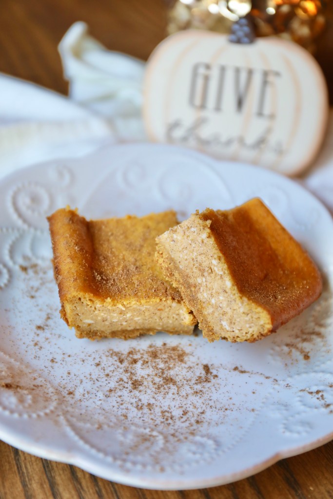 Thanksgiving calls for all things pumpkin, but sometimes we need a little change from the traditional pumpkin pie. This is especially easy for taking to a holiday party, as you can cut the bars in advance and plate them nicely, instead of cutting a pie. I loved making this recipe and will definitely make time and time again!